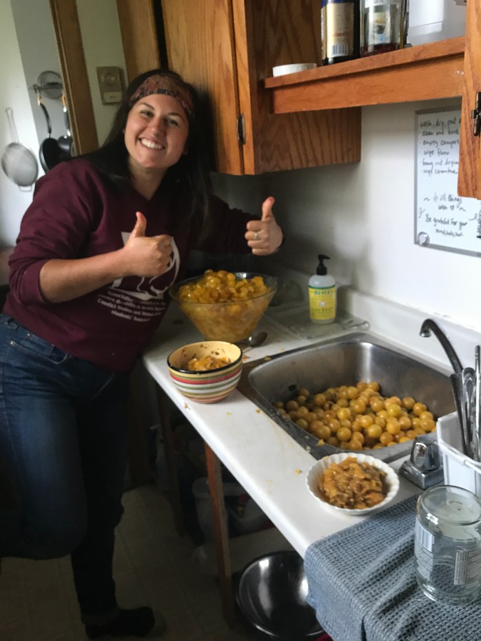 After preparing the plums, we covered them in sugar and decided to take a break. But not before Indigo named our project.